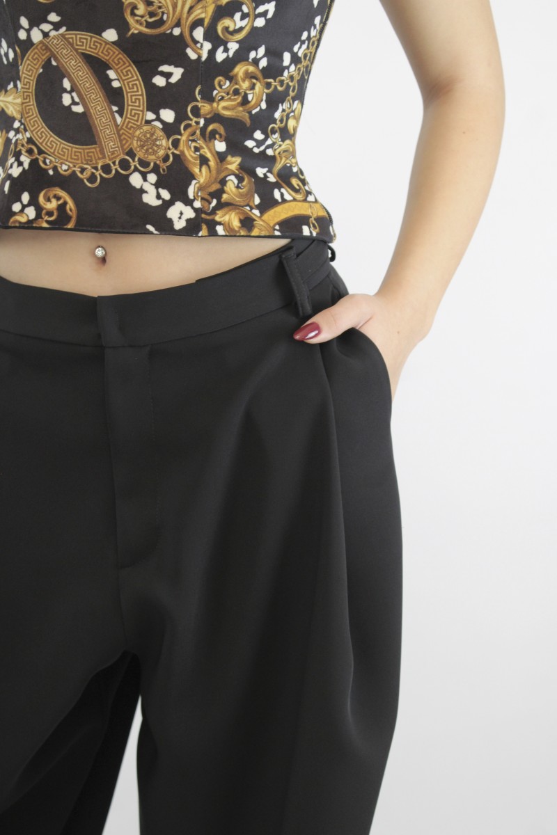Il morbido velluto di alta qualità, impreziosito da un ricercato motivo barocco nei toni del nero, oro e bianco, dona al capo un tocco sofisticato e senza tempo.