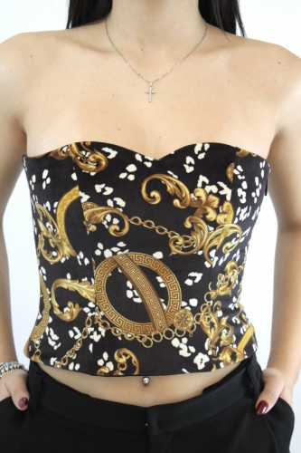 Questo bustino artigianale è sinonimo di qualità e attenzione per i dettagli. Perfetto per completare un look elegante o per aggiungere un tocco glamour sd un outfit casual-chic.