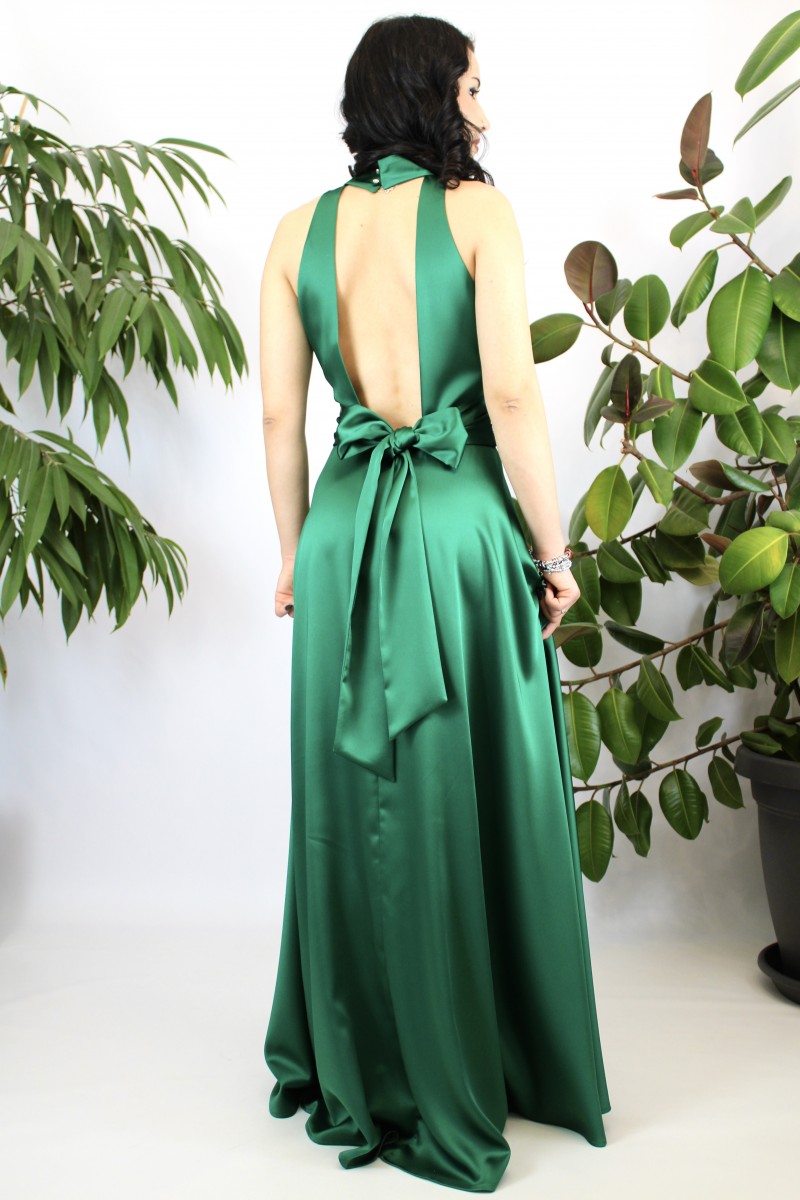 Abito lungo in Duchesse in Verde Smeraldo, perfetto per le occasioni speciali.