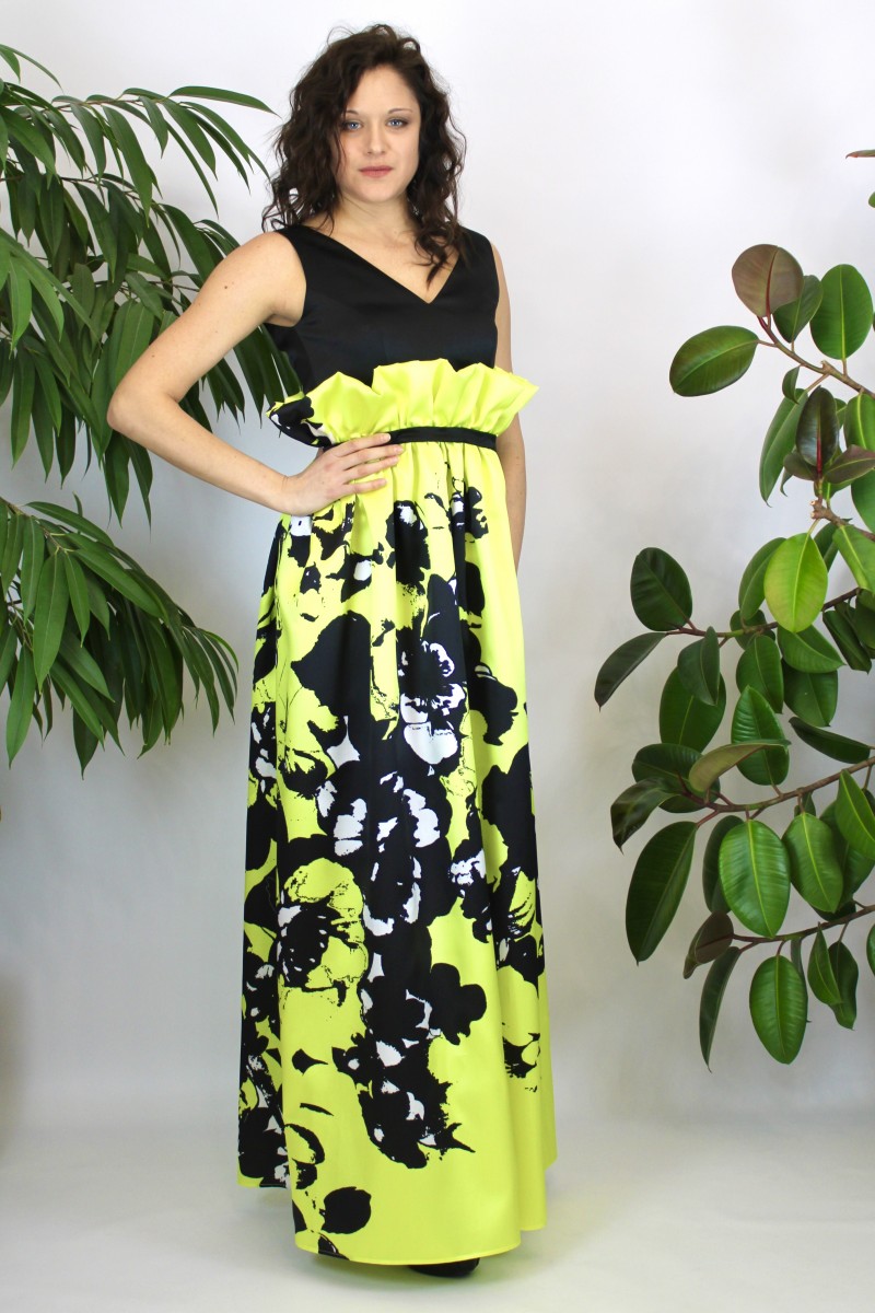 Abito Cerimonia Lungo in Mikado - Nero e Giallo
