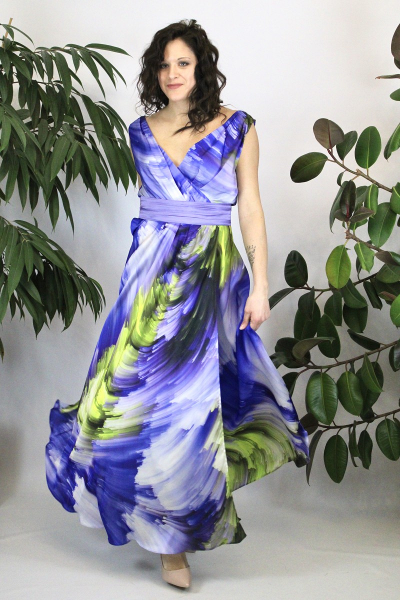 Abito Cerimonia Stampato Lungo - Pennellate Viola