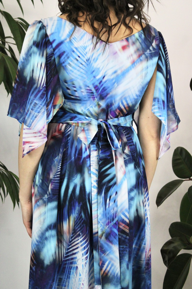 Abito da Cerimonia Incrociato Fantasia con maniche - Felce Turchese