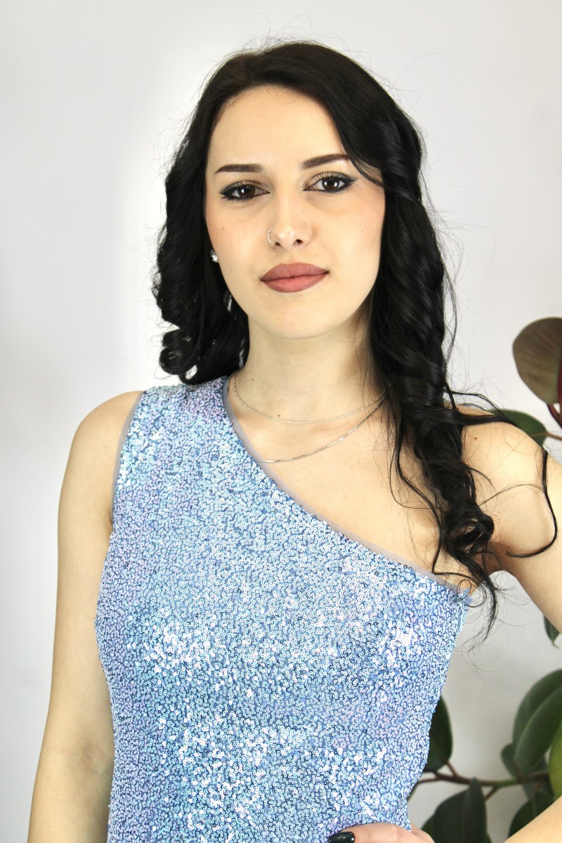 Lasciati conquistare dall'eleganza senza tempo di quest'abito lungo monospalla in paillettes, perfetto per serate indimenticabili o per festeffiare un 18esimo da vera principessa! Con il luccichio delle paillettes e lo spacco audace laterale, lascerai tutti senza fiato e sarai al centro di ogni attenzione!